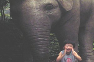 大きな象の前で、 何事か、叫んでいます。 と、言っても、もちろん 象は本物ではありません。(^^;) |