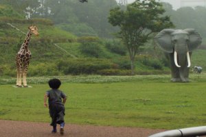 | おぉ〜?!あんなところに キリンと象が!? もちろんこちらも本物ではありません。 |