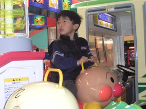 近くのショッピングセンターにある ゲームコーナーにて。 ボールがころころ落ちてくる様子を じっと見ています。 |