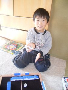 昔、私が買ったドンジャラを 引っぱり出して 遊んでいます。 でも、実はルールが よく分からないまま遊んでいるんです。 (^^;) |