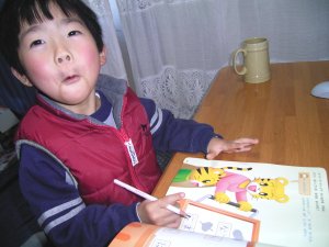 毎日お勉強をしています。 でもその顔はいったい…。 |