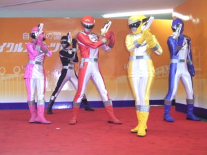 新戦隊「ボウケンジャー」の ショーを見ました。時々小雨が 降るお天気でしたので 残念ながら、室内での ショーになってしまいました。 |
