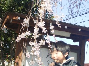 桜の枝の下で ぺろぺろキャンディーを 食べています。(^^;) |