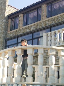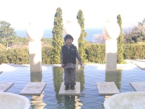 | 同じく、ステンドグラス美術館にて。 調子に乗って、何度も行ったり来たり したので、水に落ちないか 心配しました。 |