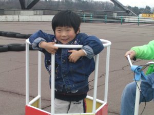 今回はボウケンピンクと 記念写真をパチリ! キャラクターのお面を 買ったのですが ぴよぴよは、何故か 男性ヒーローではなく ボウケンピンクの お面を選びました。(^^;) (手に持っているのがそうです。) |
