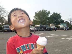 芝スキーをやりに行った 帰りに「アイス食べた〜い!」と パパにおねだり。 |