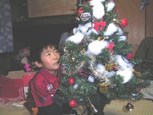 早くもクリスマスツリーを 飾りました。 サンタさんには 何のプレゼントを お願いするのかな? |