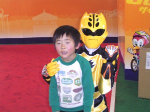 「ゲキレンジャーショー」を 見に行ってきました。 ゲキイエローと記念写真♪ なのですが…、 タイミングが合わず…。 |
