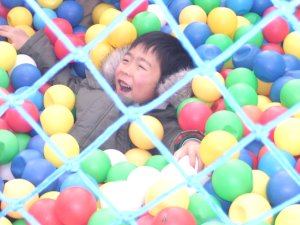 すべり台以外の好きな物 それはこの「ボールプール」です。 見かけたら、必ず入ります。(^^;) |