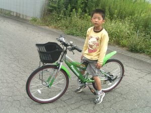 | おじいちゃんに、新しい自転車を 買ってもらいました。 前の自転車より かなり大きくなりましたが 上手に乗りこなしています。 |
