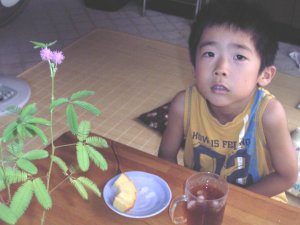 3時のおやつの時間です。 バームクーヘン食べてます。 (ほっぺが微妙に膨らんでいます。(^^;)) |