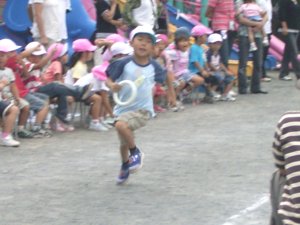 幼稚園の運動会。 競技が始まる前の ヒトコマです。 |