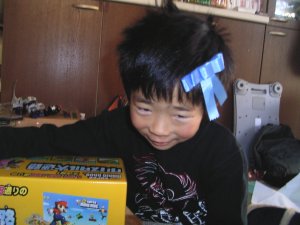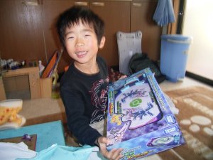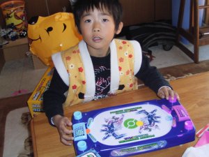 | プレゼントその1のエアホッケーを さっそくやっていますが… それは一人でやるものでは ないのでは…。(^^;) (わけあって、現在デジカメが 手元にないため 今回はクリスマスの時の写真しか 載せられませんでした。(^^;)) |
