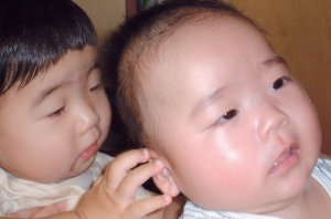 一輝くんは、ぴよぴよよりも8ヶ月 お兄ちゃんです。 この写真、ぴよぴよの顔が 一輝くんの倍に見えますね。(>_<) (この写真は今年の8月に撮られたもので 一輝くん1歳、ぴよぴよ4ヶ月の頃です。) |