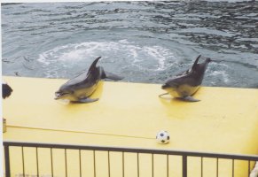 2月の18〜19日に伊豆の修善寺温泉に 旅行に行ってきました。(^_^) 宿に向かう前に、伊豆三津シーパラダイス に寄りました。 着いたら、ちょうどイルカのショーが 始まった所でした。 |