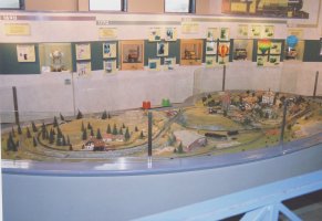 | 15インチレイルウェイミュージアムに ミニミニ電車の模型がありました。 写真中央にある赤と緑のボタンを押すと ミニミニ電車が動きます。 ぴよぴよは大喜びで、ボタンを押しまくって いました。(^_^;) |