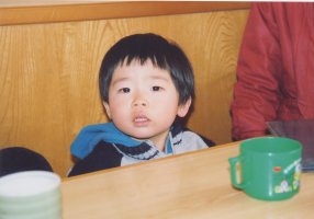今回のお宿では、夕食、朝食とも部屋食では なかったため、お料理の写真は 撮りませんでした。(大広間で食べたので お腹がいっぱいになったぴよぴよが飽きて しまって、他のお客さんのまわりを走り出した ときには慌てました。) この写真は旅行の最後、地元に戻ってきて お昼におそば屋さんで、おそばを注文し、 早く来ないかなぁ、と待っている所です。 |