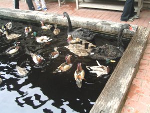 | ここでは、鳥たちに餌をあげることが 出来るのですが わぁ〜っとたくさんの鳥たちが 寄ってきて、鳥好きには たまらないのですが 小さい子には ちょっと怖いようです。(^^;) ペンギンも普通に歩いていました。 |