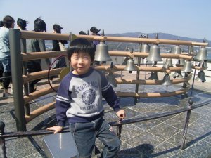 | 次に行ったのは、パルパルから 直接行ける「オルゴールミュージアム」です。 ロープウェイに乗って、 山の上まで行くとあります。 写真は、屋上の展望台にある カリヨンです。 1時間毎に素敵な鐘の音色を 聞かせてくれます。 |