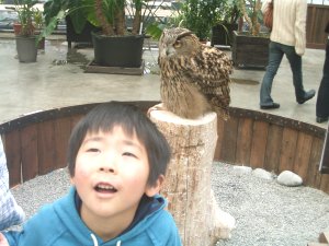 ふくろうの飛行ショーも 見ることが出来ました。 飛ぶ姿は、とても かっこよかったです。 |