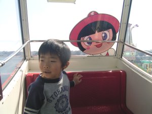 | 観覧車の中にて。 恐がりなので、最初は嫌がっていましたが 乗ってしまえば大丈夫なようで とても楽しそうです。(*^.^*) |