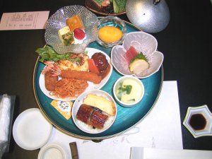 子供用の夕食「お子さまランチ」 ?です。 とってもおいしそうです。(^o^) 大人用の食事も、品数が たくさん出たのですが 一度に全部は来なかったので まとまった写真は撮れませんでした。 |