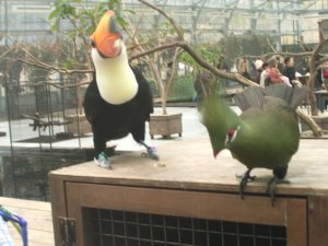 2日目は「掛川花鳥園」に 行きました。 このように、たくさんの鳥たちが 放し飼いにされていました。 |