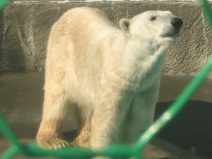 動物園のシロクマ君です。 行ったとき、ちょうど おやつの時間で お魚をあげるところを 見ることが出来ました。 |