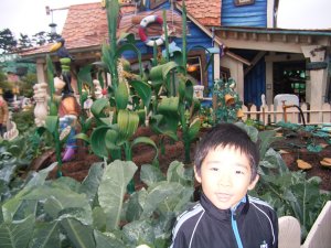同じくトゥーンタウンにて。 ぴよぴよの後ろの 大きな野菜は、本物っぽく 見えました。 長ネギもありましたが、 触ったら、ネギのにおいが しました。 |