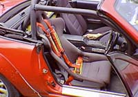 ショルダー部分のシートベルトは、ブレスバーに巻くタイプなので比較的簡単でした。アイボルトのタイプならアイボルト付きのブレスバーが良いでしょう。しかし物によっては、リアウィンドーの下らへんに穴を開けアイボルトを付けないと装着できない物があります。(シートベルトの長さの関係により・・・) |