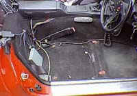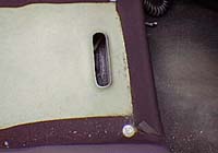 5点目となるシートベルトを固定します。先ほど付けたマークの位置を見るとちょうど良いところに既設の穴を発見!この穴を流用しよう・・・と思いましたが、鉄板が薄く、強度的に問題がありそうなので中止。フロアーに穴を開けて固定しようかと思ったが、今回はシートレール側に固定することにした。 |