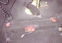 前と後に2カ所ずつ止まっています。純正のシートの場合は、ヘッドレススピーカーの配線も外します。 |