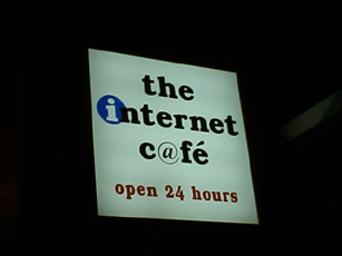ワイキキの外れにあるインターネットカフェで、インターネットを楽しんで友人には、