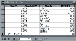 (3) 商品マスタテーブルをレコードソースにした表形式のフォームを作成し、