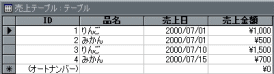 エイリアス(別名)を付け、売上テーブルのカレントレコードと、売上テーブル