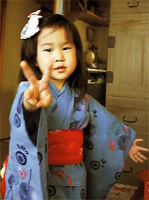 下の写真はお祭りの日、浴衣姿で「3歳になりました」!!
