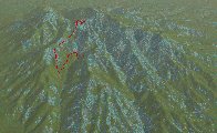 赤渕川上流部 12:17 縦走路より振り返る。ここまで、2時間半。ルートを眼下に納める。 |