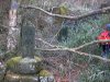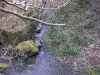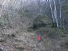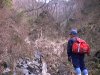 水神 9:51 終点駐車場から右手の沢に降りる。5分ほどで桑崎部落の水源を守る水神社の祠に出会う。すぐ上の堰堤への取り付きで事故が発生したためか、バラセンで通行止めにしてあるが、仮止めの柵をくぐらせていただく。 何とか登るが、降りるときはちょっと手こずるだろう。 |