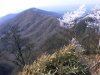 高場所尾根 12:37 風のある山頂では長居が出来ない。そうそうに引き上げる。これからたどる高場所尾根が一望できる。 |