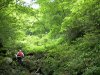 枝沢 12:52 前回のルートから右手にはずれ、大岳より派生する北尾根を目指す。一面緑ではあるが沢筋は以外に歩きやすい。ほとんど一直線に尾根に突き上げる。 |