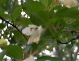 出合 12:50 前回大岳より呼子岳を結ぶ稜線を一望できたが、枝葉にさえぎられ360°すべて若葉色である。真夏になると厚さの増した緑の濃い葉で光をさえぎられ陰鬱な雰囲気で食欲がわかない。 |