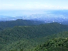 山頂より富士市街を視野に納める 呼子岳より西方に、たおやかな尾根が桑崎集落まで延びる。左手の尾根は、大岳より1041mのコブから桑崎集落の下流にある石井部落に達する。この2つの尾根の向うに県下第2位の工業都市、富士の市街がスモッグに覆われて広がる。富士川、そしてお分かりだろうか、その彼方に三保の砂州が折戸湾を囲んでいる。 |
