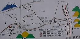 展望台 9:47 マイカー族もここまで登ってくる。裾野を視野いっぱいに広げた雄大な富士を眺めることができる。ここには、コンクリート作りの頑丈な展望台がある。これより、カヤトを切り開いたなだらかな尾根道になる。 |