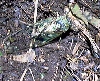 エゾハルゼミ 11:07 登山道が樹林帯の中に入ると、途端に賑やかになる。ウグイスの声を圧倒して、樹林の中はセミの鳴き声で満たされる。羽化したばかりであろう、目の前に不時着する。 |