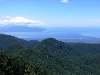 山頂より駿河湾を望む 11:19 この時期にまれな好天である。もっとも今回はそこをねらっての山行きである。6月に入り、すでに3つの台風に見舞われ、今年は史上2番目だとのことである。台風8号は富士山南麓を覆っていたスモッグを吹き払って西伊豆の起伏に富んだ海岸線を眼下に見せている。正面は大岳、その北斜面はいたるところ崩壊の赤茶けた地膚をのぞかせている。大岳山頂より手前の呼子岳まで、崩壊が激しく登路はない。 |