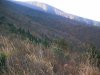 山頂より 9:10 越前岳より西に派生する尾根の南面。山頂部南面のブナはほぼ枯れ尽くし、幼木の枯死した白い幹がかってのブナの存在を訴えている。北面は古木もあるが、位牌岳から袴腰岳の東面の尾根筋にあるような美しさはない。 400mから600mのすそ野越しに毛無山塊、その背後に南アルプス北部の山並みを望むことが出来るが、今日は期待できない。 |