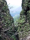 割石峠 10:05 ここで、北端の越前岳より南端の愛鷹山を結ぶ、愛鷹連峰の従走路に出る。 大沢よりこの峠を乗り越すと、須津川からの登路にをたどり、富士市街・須津の集落に達する。天気がよければ、チムニーの向こうに駿河湾が狭い三角形になって望むことができる。海に近いこの山域では、春から夏にかけて上昇気流が発生しすっきりと遠望できる日は限られる。南東に県下第二位の工業地帯を抱えているからなおさら期待でできない。 |