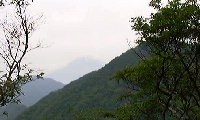位牌岳山頂 12:40 遅い昼食になった。厚い雲でいつもの明るいこの山頂も陰うつである。半月の時間が緑を一層濃くしたためかもしれない。昼食を早々にして切り上げる。 |