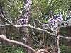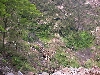崩壊地 7:48 昨年の台風は、富士山・愛鷹連峰に大きな被害を出した。特に、スギ・ヒノキの植林地の被害は甚大であった。山中いたるところに倒木の帯に出会う。ここ須津川でも西面の大岳斜面、東面の位牌岳・袴腰岳の斜面は赤茶けた山肌を見せている。 |