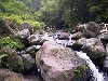 野猿沢出合 7:41 この山域随一の悪沢。入山禁止である。 この上に「大石」がある。過去幾たびかの台風による水害に見舞われたが、この「大石」は健在である。 |